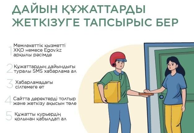 Құжатыңыз 1 жұмыс күні ішінде үйіңізге жетеді, қызмет құны – 970 теңге. Сервис қала шегінде ғана қолжетімді.