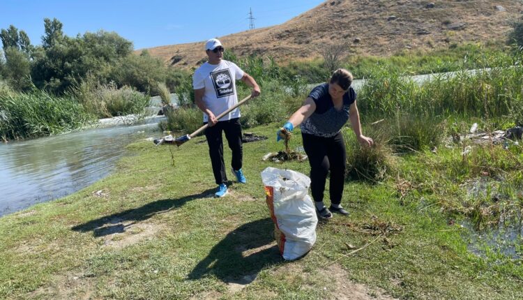 В ходе мероприятия, организованного акиматом города Тараза, молодежь города и жители данной территории провели уборку и очистили территорию на побережье реки Талас от мусора.